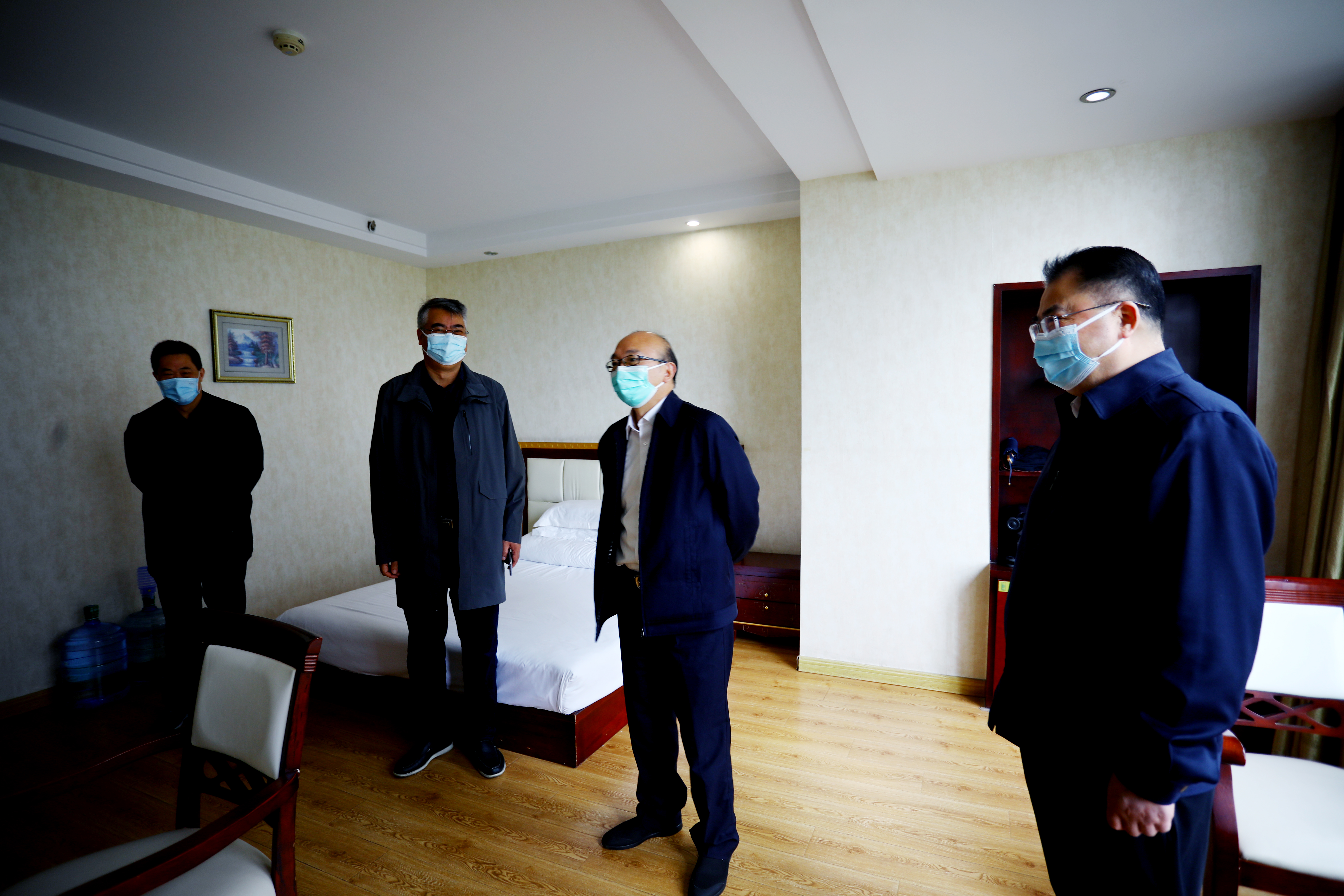 在臺北投資公司機(jī)關(guān)臨時辦公點(diǎn),丁銳詳細(xì)檢查了員工臨時宿舍、值班值守和防疫管控情況,在聽取了臺北投資公司疫情防控工作情況匯報后強(qiáng)調(diào),要落實(shí)好“疫情要防住、經(jīng)濟(jì)要穩(wěn)住、發(fā)展要安全”的要求,做到既防住疫情,又盡可能減少對生產(chǎn)經(jīng)營和民生服務(wù)的影響。要保護(hù)自身安全,督促員工抓好自身防護(hù),做好定時消殺,關(guān)注用電用火安全,保障值守必備物資。要持續(xù)深入宣傳疫情防控政策措施,嚴(yán)格遵守各項(xiàng)疫情防控規(guī)定,提高防疫意識和自我防護(hù)能力,構(gòu)筑起群防群控、聯(lián)防聯(lián)控的堅固防線。