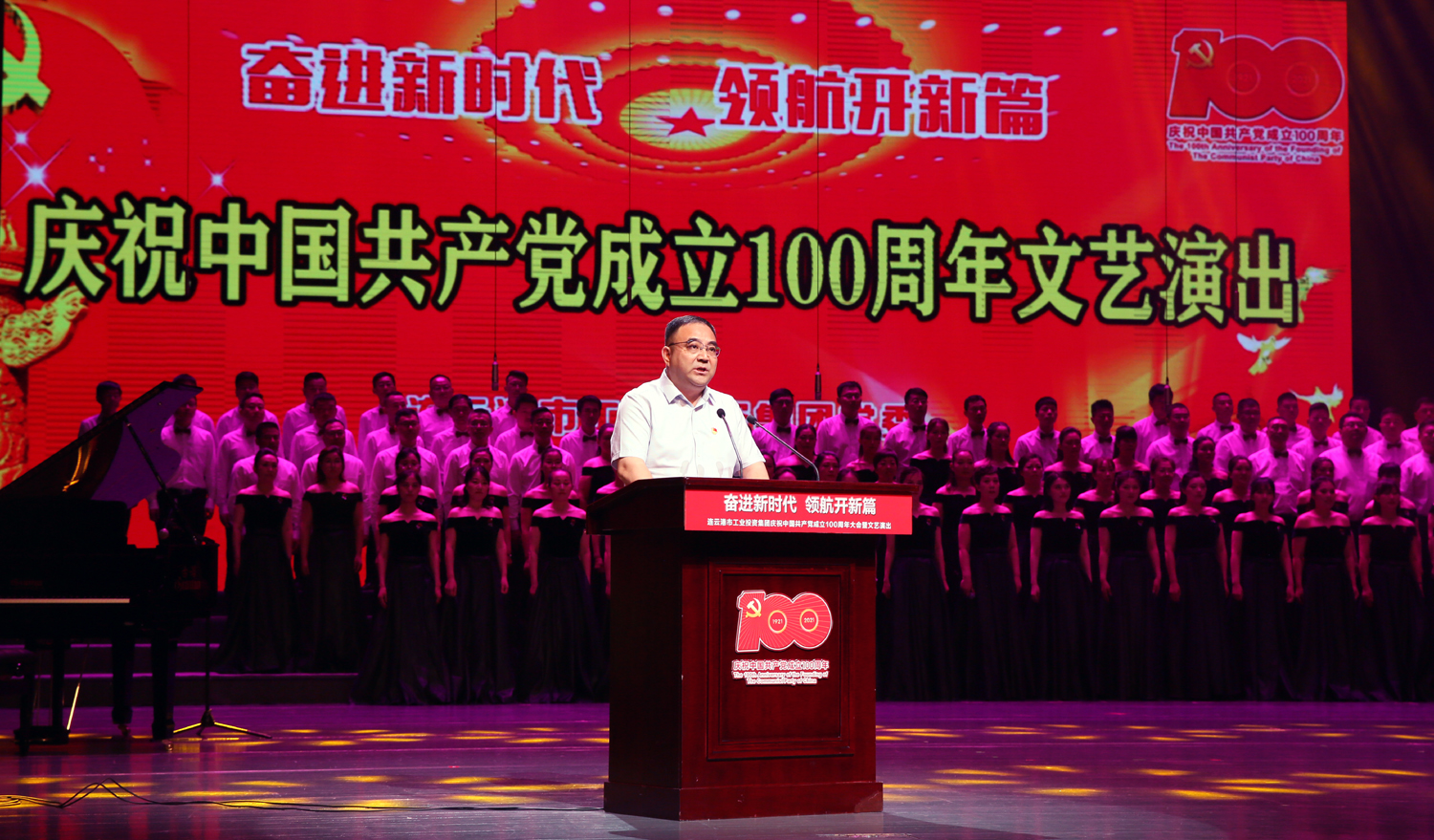為隆重慶祝中國共產黨成立100周年,6月28日下午,集團公司在市文化藝術中心召開“奮進新時代 領航開新篇”慶祝中國共產黨成立100周年大會暨文藝匯演。市國資委黨委委員、副主任李君儒,集團公司黨委書記、董事長楊龍等黨委班子成員參加慶祝大會。