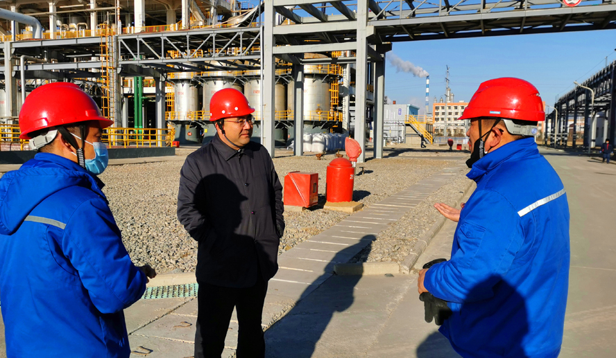 楊龍在檢查了利?;す緩S區(qū)生產(chǎn)情況及裝置防寒保溫措施后,對該公司防寒生產(chǎn)工作予以肯定,并要求繼續(xù)完善好極端天氣下的防寒防凍工作,同時加強疫情防控,確保公司安全穩(wěn)定生產(chǎn)。