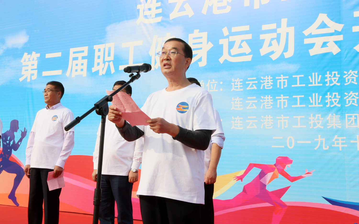 金秋十月,丹桂飄香。10月24日上午,美麗的徐圩新區(qū)云湖廣場彩旗招展,歌聲飛揚(yáng),為慶祝中華人民共和國成立70周年,豐富職工業(yè)余文化生活,由集團(tuán)公司、集團(tuán)公司工會(huì)主辦,徐圩投資公司承辦的集團(tuán)第二屆職工健身運(yùn)動(dòng)會(huì)開幕式暨健步走活動(dòng)在這里隆重舉行。集團(tuán)公司黨委書記、董事長楊龍宣布第二屆職工健身運(yùn)動(dòng)會(huì)開幕,并為健步走活動(dòng)發(fā)令??偨?jīng)理胡建明致開幕詞。工會(huì)主席劉承志主持開幕式。 本次運(yùn)動(dòng)會(huì)圍繞“美麗中華·文明工投·快樂職工”活動(dòng)主題,來自全公司各條戰(zhàn)線的17支代表隊(duì)1200多人次的運(yùn)動(dòng)員參加拔河、跳繩、乒乓球、健步走等項(xiàng)目的角逐。他們以勇奪第一、超越自我的競賽精神和攜手奮進(jìn)、合力拼搏的競賽風(fēng)尚,充分展示工投人追求卓越、共建和諧的優(yōu)秀精神風(fēng)貌。本次運(yùn)動(dòng)會(huì)將對(duì)個(gè)人單項(xiàng)比賽前六名、集體項(xiàng)目比賽前三名及道德風(fēng)尚獎(jiǎng)獲得者給予表彰。