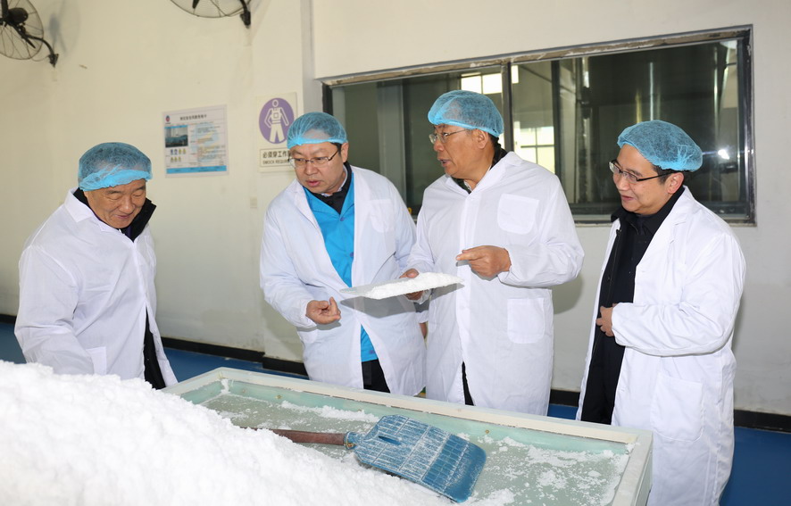 12月29日,中國鹽業(yè)協(xié)會(huì)理事長(zhǎng)茆慶國一行到集團(tuán)公司調(diào)研鹽業(yè)生產(chǎn)情況。集團(tuán)公司常務(wù)副總經(jīng)理?xiàng)顕屡阃?/span>