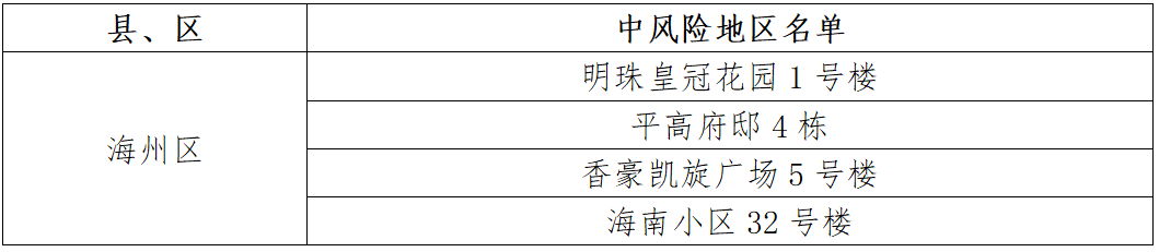 連云港市中風(fēng)險地區(qū)(4個)