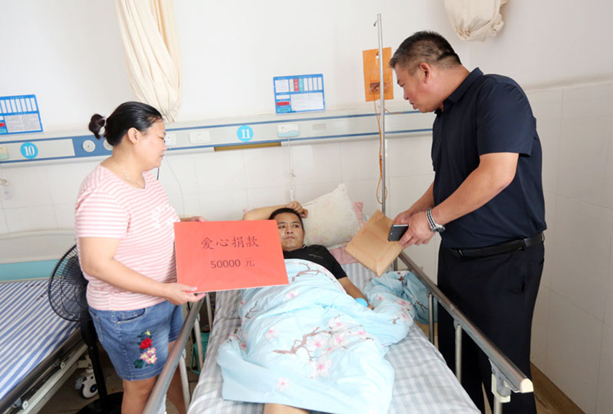 8月16日上午,徐圩投資公司總經(jīng)理莊清付一行到市第二人民醫(yī)院看望正在住院治療的職工張聯(lián)君,并將5萬元職工愛心捐款交到他妻子朱敏的手中,讓他和家人感動萬分。