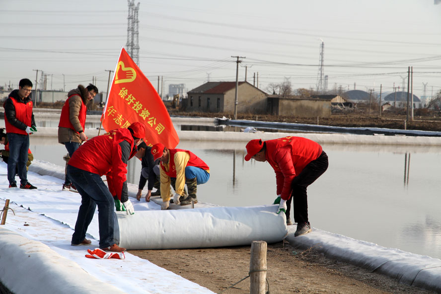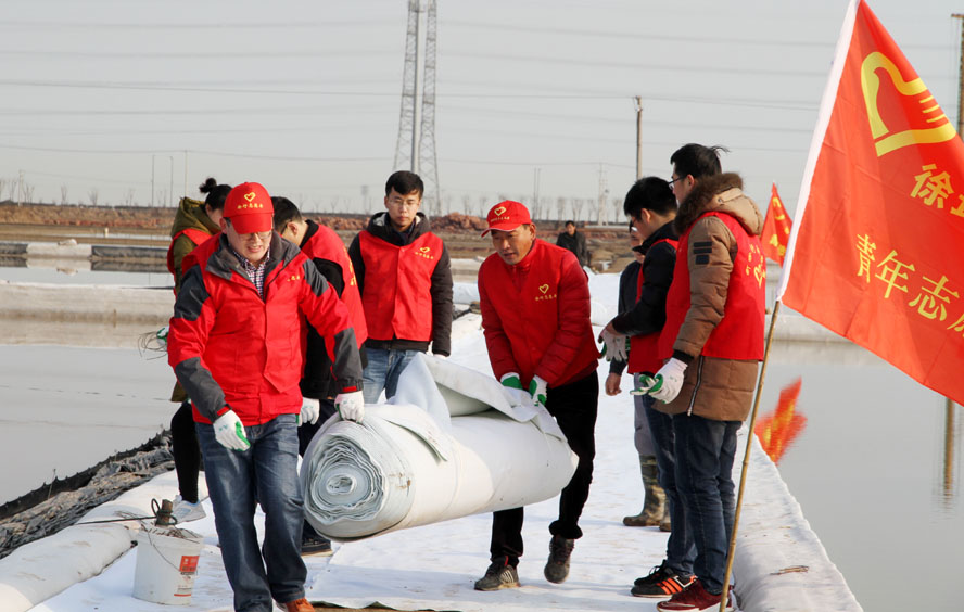 1月11日上午,徐圩投資公司團(tuán)委組織部分青年志愿者到新灘原料鹽基地十組一單元協(xié)助完成土工布貼埝工作。