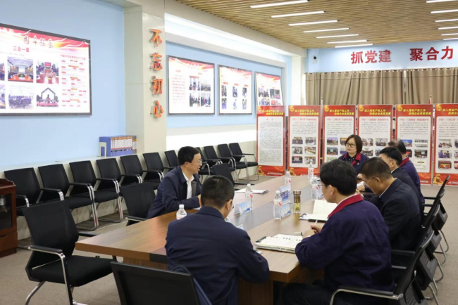 5月9日市委組織部副部長(zhǎng)、市委編辦主任陳中本一行赴氨綸公司調(diào)研指導(dǎo)。集團(tuán)公司黨委副書記、副董事長(zhǎng)、總經(jīng)理張六林、副總經(jīng)理劉承志、氨綸公司董事長(zhǎng)張斌、常務(wù)副總經(jīng)理?xiàng)钌阃{(diào)研。
