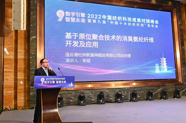 本次會(huì)議以“數(shù)字引擎 智慧未來(lái)”為主題,氨綸公司申報(bào)的“基于原位聚合技術(shù)的消皇氨綸纖維開(kāi)發(fā)及應(yīng)用”項(xiàng)目榮獲“中國(guó)十大紡織科技·新銳科技獎(jiǎng)”。