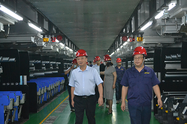 李永良一行人先后參觀了公司展廳、黨員活動室、抖音直播間、八期生產(chǎn)線、自動化包裝線等。參觀過程中,公司總經(jīng)理張斌對我公司的發(fā)展歷程,差別化產(chǎn)品、戰(zhàn)略優(yōu)勢、等進行了詳細介紹。李永良對我公司低溫熱粘合氨綸、抗菌氨綸、驅(qū)蚊氨綸及氨綸生產(chǎn)全流程自動化、智能化生產(chǎn)線等給予了高度評價。希望公司進一步深入實施差別化氨綸及后道特色產(chǎn)品發(fā)展戰(zhàn)略的重大舉措,乘風破浪,再創(chuàng)行業(yè)輝煌。