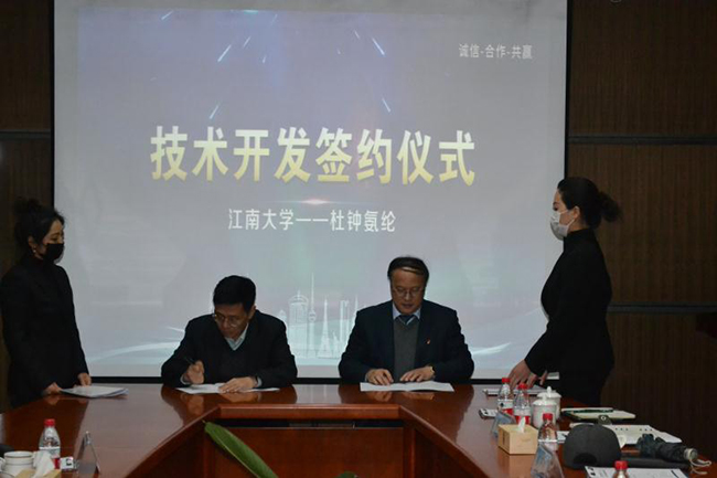 在隨后雙方進行的交流會議上,叢教授介紹了針織中心科研項目、科研成果與產(chǎn)業(yè)化、多元化和國際化發(fā)展理念,蔣教授作了氨綸針織產(chǎn)品的多元化發(fā)展報告,雙方就合作事宜進行了深入交流,大家對原液著色氨綸、可染易染氨綸、高回彈和超柔氨綸等高值化產(chǎn)品,抗菌防臭氨綸、芳香驅(qū)蚊氨綸等功能化產(chǎn)品及其下游產(chǎn)品開發(fā)等進行了全面探討。張總與蔣教授共同表達了在功能化氨綸針織面料研發(fā)領(lǐng)域進行深度開發(fā)與合作的意向,期待攜手共創(chuàng)針織行業(yè)輝煌。最后,雙方簽署了戰(zhàn)略合作協(xié)議。