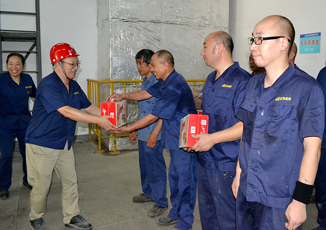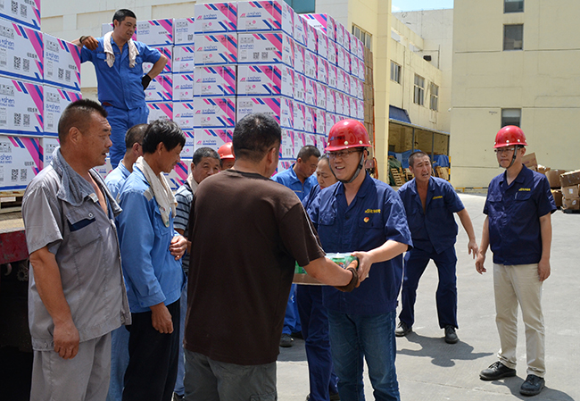 送清涼。今年七八月,我市持續(xù)高溫,氨綸公司工會(huì)牽頭辦公室向一線員工送防暑降溫用品,在炎炎夏日為一線員工送去雪糕、飲料、礦泉水等飲品和工會(huì)“娘家人”的問(wèn)候。食堂每日為員工提供綠豆湯、西瓜等夏季瓜果,讓一線工人們?cè)诳崾钪懈惺艿搅艘唤z舒心的涼意。為了防止高溫季節(jié)突發(fā)意外,公司安全部購(gòu)買(mǎi)藿香正氣水、人丹、風(fēng)油精、速效救心丸、燙傷膏、瀉立停等應(yīng)急藥品發(fā)放到各生產(chǎn)部門(mén),為員工平安度夏做好預(yù)防工作,切實(shí)保障他們的身體健康。
