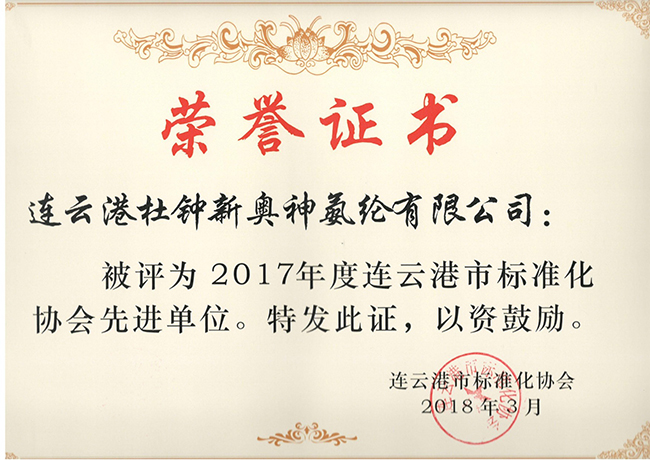 氨綸公司以積極推進(jìn)標(biāo)準(zhǔn)化建設(shè)為手段,全面提升科學(xué)管理,取得了良好成效。2017年,公司大力開展“5S”管理,公司管理水平和員工素質(zhì)得到了很大提升,獲得了連云港市標(biāo)準(zhǔn)化協(xié)會頒發(fā)的“2017年度連云港市標(biāo)準(zhǔn)化協(xié)會先進(jìn)單位”榮譽(yù)稱號。
