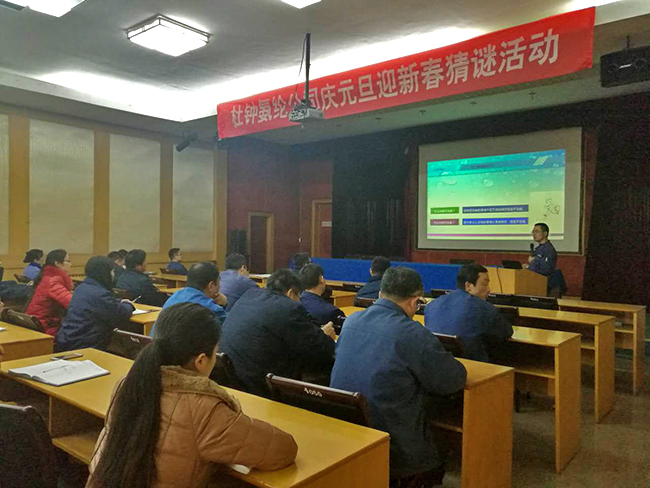 2017年1月12日氨綸課堂首次培訓(xùn)在多功能廳成功舉行。此次培訓(xùn)邀請(qǐng)氨綸公司副總經(jīng)理張華衛(wèi)主講,公司各部門主管、生產(chǎn)助理、班長(zhǎng)、單管、安全員及儲(chǔ)備大學(xué)生50余人參加了培訓(xùn)。