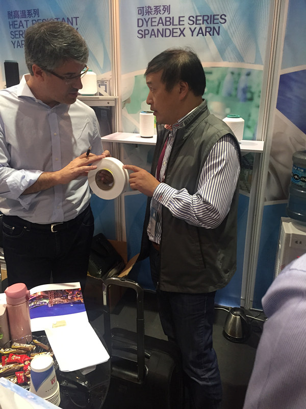 為開發(fā)海外市場(chǎng),拓寬銷售渠道,公司從七月份開始,即著手報(bào)名參加本屆紗線展,并為此做了大量的準(zhǔn)備工作,如聯(lián)系制作公司英文視頻、英文網(wǎng)站、宣傳冊(cè)、產(chǎn)品手冊(cè)及微信公眾號(hào)等等;確定參展產(chǎn)品;并專門成立紗展工作組,從氨綸應(yīng)用的專業(yè)知識(shí)到語言、禮儀、參展注意事項(xiàng)等方面加強(qiáng)了學(xué)習(xí)。