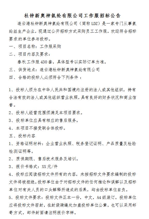 工作服招標(biāo)公告