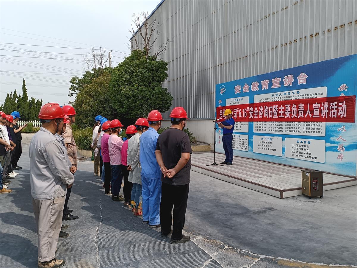 董事長陳青山針對生產(chǎn)場所作業(yè)特點,多角度宣講了安全生產(chǎn)知識和事故危害的預(yù)防措施,警示員工不要違章操作、管理人員不要違章指揮,切實從安全發(fā)展出發(fā),確保責(zé)任落實到部門、到班組、到崗位,保證“人人講安全、個個會應(yīng)急”。