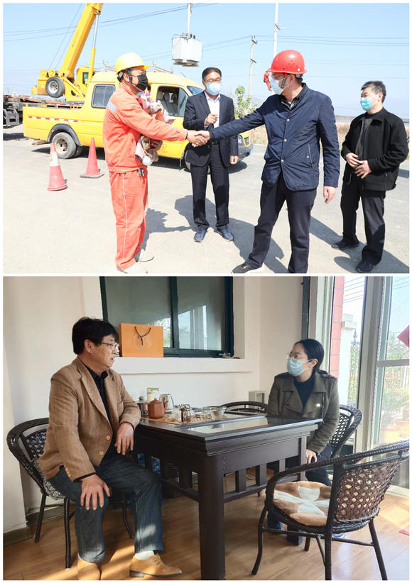 “五一”國際勞動節(jié)前夕,4月29日上午,公司經(jīng)理孫政權、工會主席王志軍、經(jīng)理助理朱兵等一行走訪慰問了市勞動模范徐加成和市五一勞動獎章獲得者王建。 走訪過程中,經(jīng)理孫政權詳細詢問了兩位勞模的身體健康和生活情況,向他們致以節(jié)日的問候,對他們?yōu)槠髽I(yè)發(fā)展作出的貢獻表示衷心感謝,對他們默默無聞、無私奉獻的精神表示崇高的敬意,并將企業(yè)的溫暖送到他們身邊。(電宣)