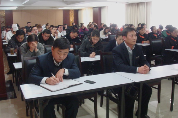 2月23日星期六,淮鹽大酒店組織全體員工,進(jìn)行素質(zhì)培訓(xùn)。23日下午兩點(diǎn),為提高酒店全體員工素質(zhì),給客人提供更加優(yōu)質(zhì)的服務(wù),樹(shù)立酒店良好的口碑,贏得更多的客戶,該酒店按照特別準(zhǔn)備的詳細(xì)培訓(xùn)計(jì)劃,對(duì)全體員工進(jìn)行“酒店員工基本素質(zhì)培訓(xùn)”。酒店總經(jīng)理伏運(yùn)余、總經(jīng)理助理徐園園和餐飲總監(jiān)陳明生與員工一起參加了培訓(xùn)。(董淑娟)