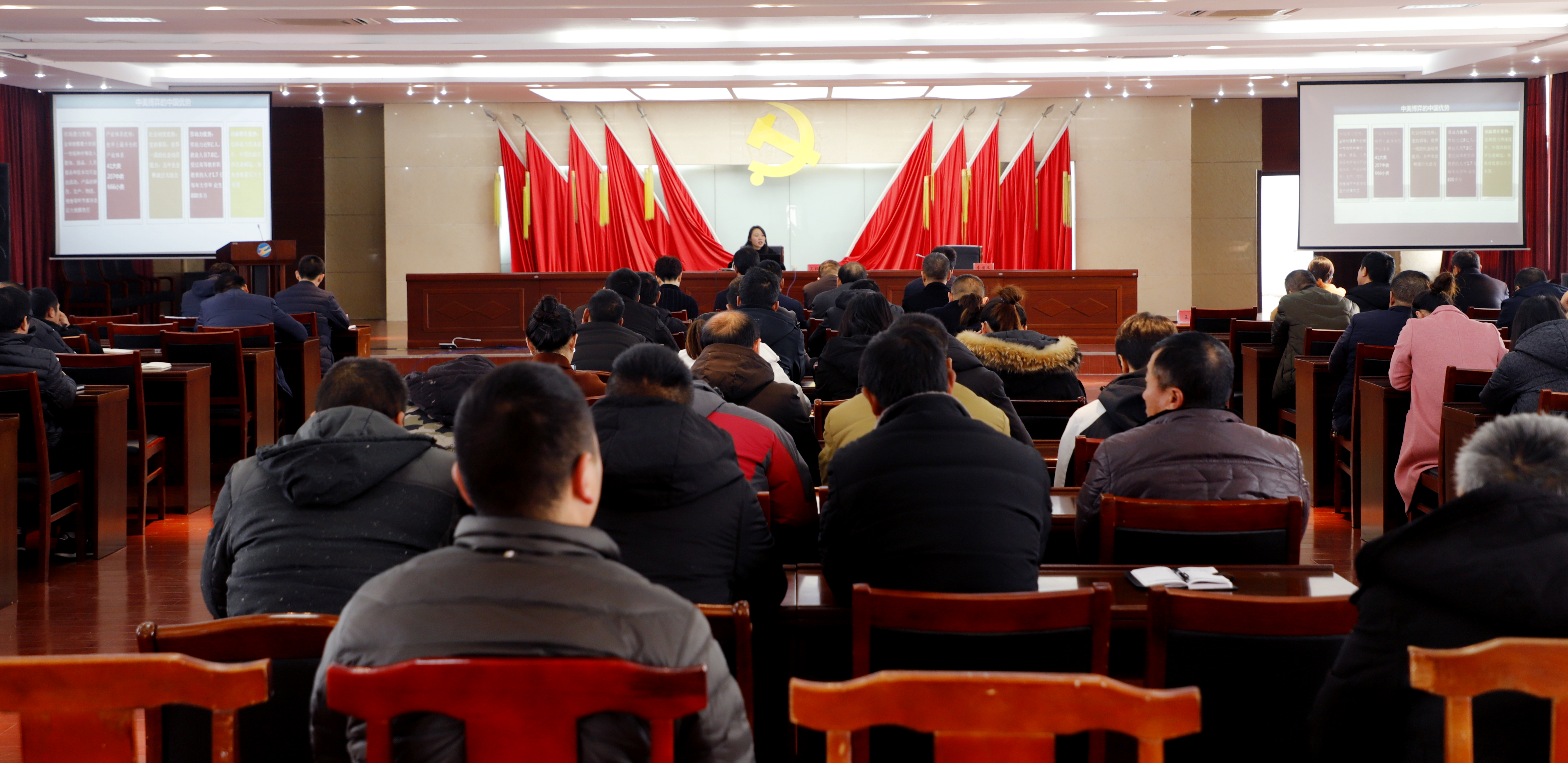 專題輔導(dǎo)講座中,吳秋婷首先從“十九屆五中全會(huì)的重要性特殊性”講起,她闡述到“十四五”規(guī)劃是開(kāi)啟30年新征程進(jìn)程中的第一個(gè)五年規(guī)劃。所以這次全會(huì)通過(guò)的經(jīng)濟(jì)發(fā)展規(guī)劃建議,其意義非同尋常,它是我們開(kāi)啟全面建設(shè)社會(huì)主義現(xiàn)代化國(guó)家新征程的第一個(gè)文件。同時(shí),為大家講解了現(xiàn)在我國(guó)明確要按照新發(fā)展理念推動(dòng)經(jīng)濟(jì)從高速增長(zhǎng)到高質(zhì)量發(fā)展轉(zhuǎn)變;整個(gè)經(jīng)濟(jì)布局是要以內(nèi)循環(huán)為主體、內(nèi)外循環(huán)相互促進(jìn)的新發(fā)展格局,這個(gè)格局是根據(jù)百年未有之大變局和中華民族偉大復(fù)興的需要制定的。隨后從“十九屆五中全會(huì)《建議》《公報(bào)》框架及主要內(nèi)容”、“十九屆五中全會(huì)《建議》《公報(bào)》中新表述新提法”等多個(gè)方面解讀全會(huì)精神,宣講深入淺出、聯(lián)系實(shí)際、通俗易懂,讓現(xiàn)場(chǎng)聆聽(tīng)的黨員干部受益匪淺。