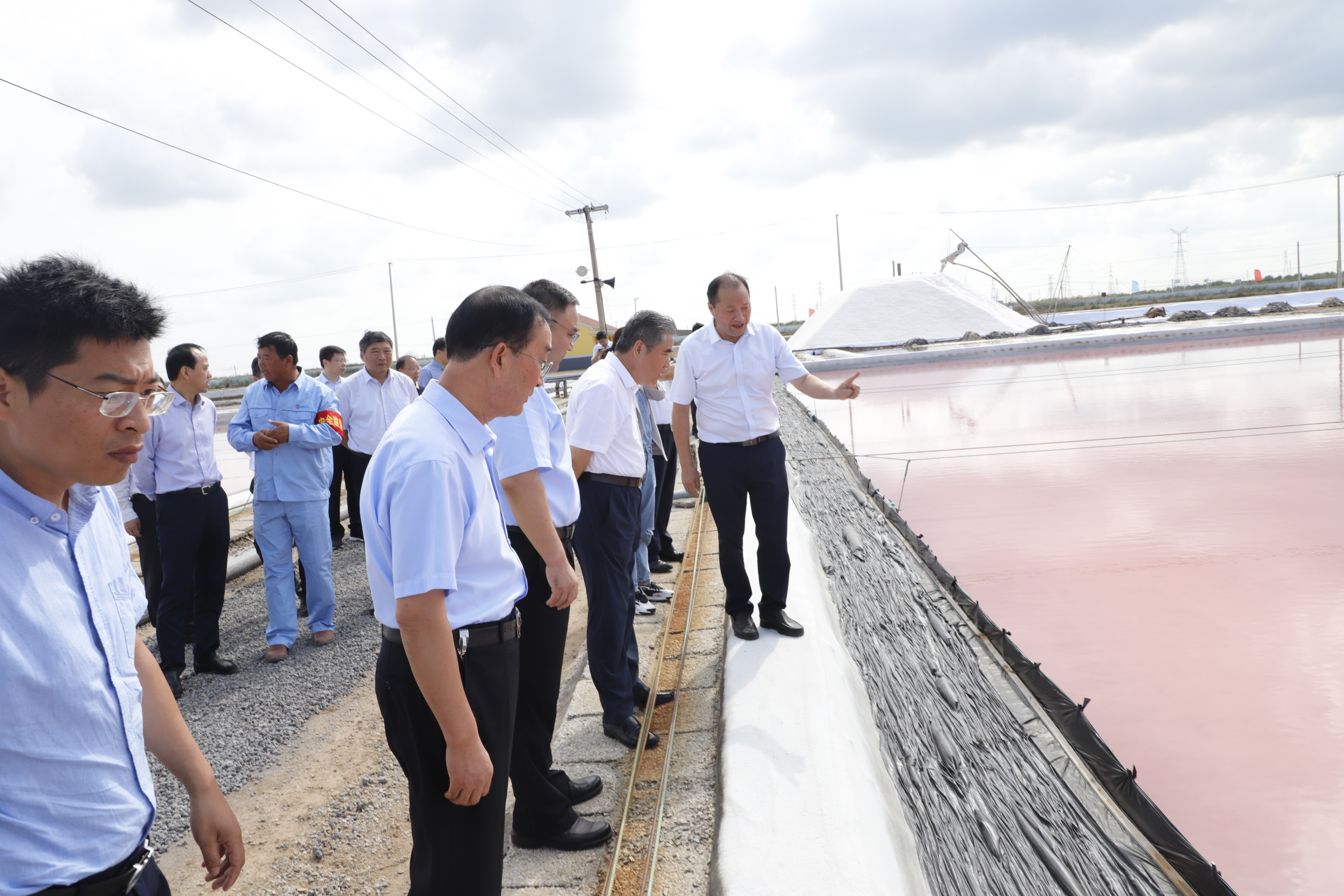 秋高氣爽,粉色鹽池美如畫。在日曬制鹽扒鹽現(xiàn)場,項雪龍仔細聽取了制鹽工藝流程和鹽業(yè)生產經營等情況。實地察看日曬在池鹽集中結晶區(qū)、機械化扒鹽生產現(xiàn)場,充分肯定了鹽業(yè)生產通過創(chuàng)新生產工藝、加強質量管控取得的發(fā)展成效。并指出,鹽在生產生活中應用十分廣泛,隨著人民生活水平的不斷提高,市民對高品質鹽的需求越來越旺盛,制鹽產業(yè)發(fā)展前景廣闊。要堅持以市場為導向,加大技術研發(fā),加快產品升級,不斷擴大中高端產品供給,推動實現(xiàn)質量更高、效益更好、競爭力更強的發(fā)展。