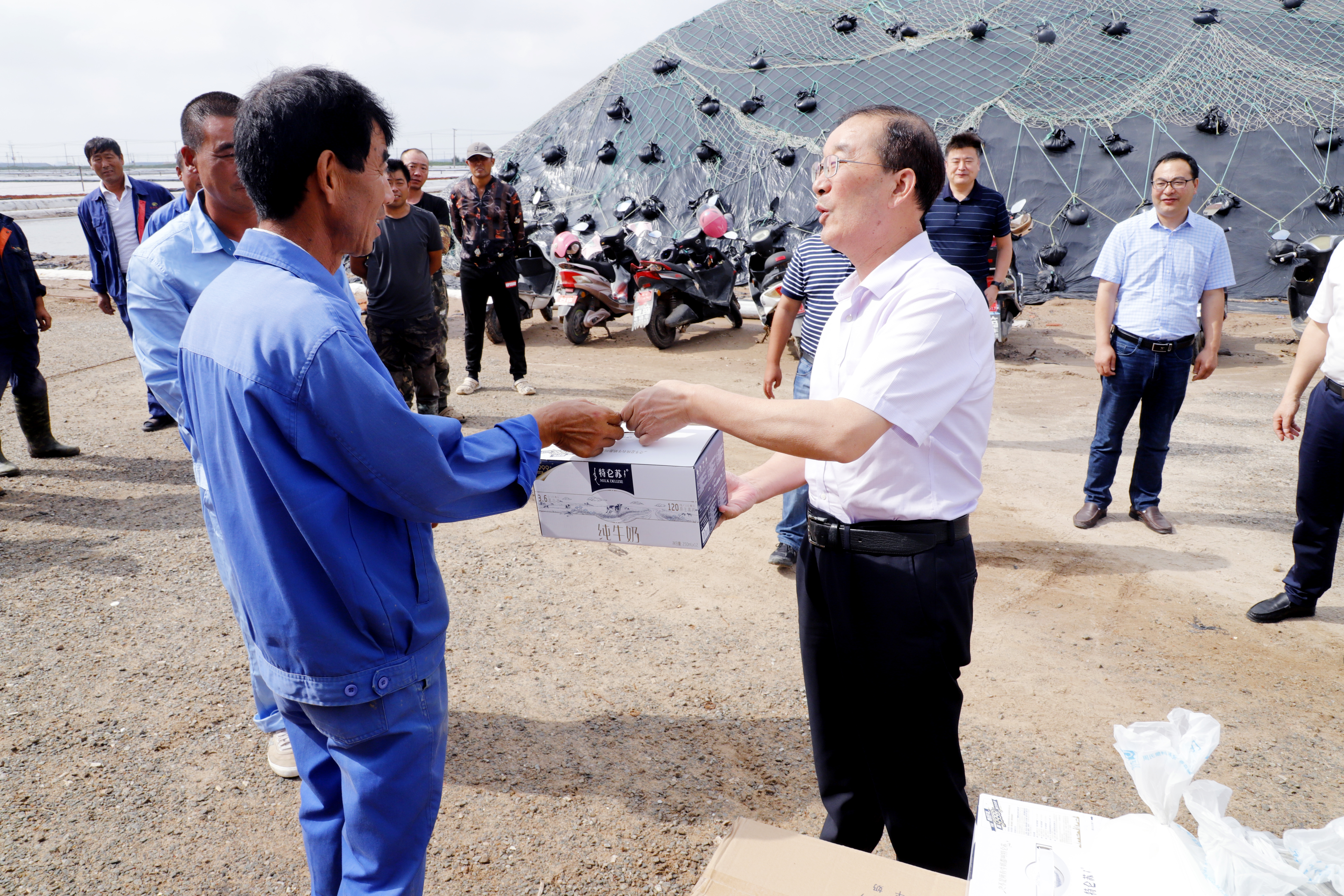 “大家辛苦了。”胡建明微笑著與一線工人一一握手表示感謝,感謝大家為公司做出的貢獻(xiàn),并送上了清涼飲品。同時,他還詳細(xì)詢問了生產(chǎn)情況,囑咐在高溫天氣下,既要抓好安全生產(chǎn),也要勞逸結(jié)合,保重身體,嚴(yán)防中暑。“最近天氣比較炎熱,大家要休息好,上班要注意安全,做好防暑降溫措施,保持身體健康。”