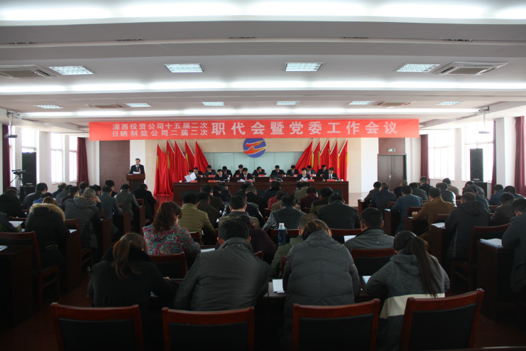 3月16日,灌西投資公司十五屆二次、日曬制鹽公司二屆二次職代會暨黨委工作會議在聯(lián)合服務(wù)中心五樓會議室隆重召開。公司董事長、黨委書記王德志作黨委工作報(bào)告,總經(jīng)理李國文作總經(jīng)理工作報(bào)告,紀(jì)委書記王保平作紀(jì)委工作報(bào)告。會議審議并通過了有關(guān)方案,簽訂了2016年度集體合同,宵洋、南翼、銷售部等單位和部門負(fù)責(zé)人分別遞交《2016年目標(biāo)責(zé)任認(rèn)標(biāo)書》、《黨風(fēng)廉政建設(shè)責(zé)任書》并作表態(tài)發(fā)言,大會還對2015年度先進(jìn)單位、先進(jìn)部門、先進(jìn)班組、先進(jìn)個(gè)人、廉潔之星進(jìn)行了表彰。