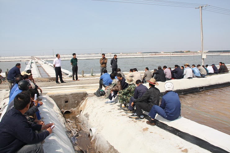 為全面推進鹽田改造工作開展,深入貫徹落實防汛工作會議精神,6月6日,日曬制鹽公司在新河制鹽分公司零班組織召開鹽業(yè)生產(chǎn)現(xiàn)場會,公司總經(jīng)理李國文、副總經(jīng)理古浩光,生產(chǎn)服務(wù)公司、機電服務(wù)公司負責(zé)人,各制鹽分公司管理人員及生產(chǎn)班組長參加會議。