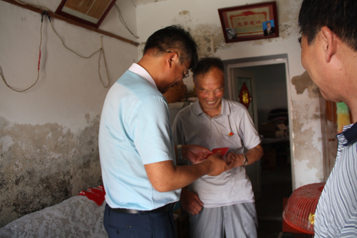 為紀念黨的生日,充分體現(xiàn)公司黨委對老黨員的關懷和愛護,6月30日,灌西投資公司黨委書記王德志、副書記王保平等一行走訪慰問老黨員和生活困難黨員。每到一處,王德志書記都親切地和老黨員拉家常,為老黨員佩戴黨徽,贈送黨章,詳細了解老人的身體狀況和生活情況并送上慰問金。
