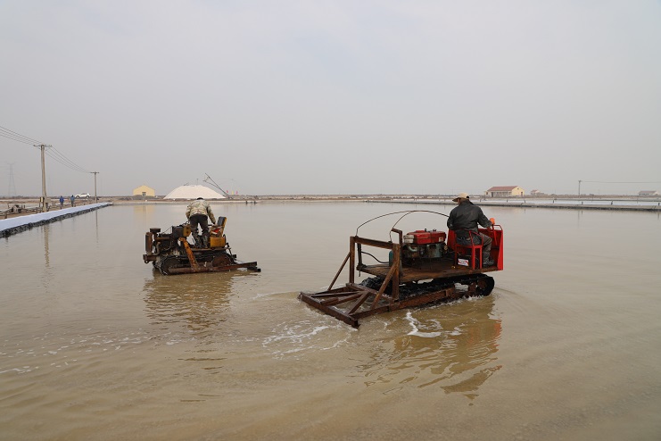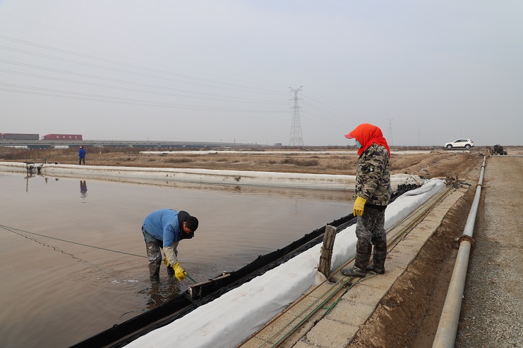 在日曬制鹽新河分公司零班生產(chǎn)現(xiàn)場(chǎng),該班全體員工正在班長(zhǎng)王興東的帶領(lǐng)下有條不紊的忙碌著,他們有的在對(duì)繩、有的在活碴、有的在破碴。據(jù)了解,由于近期夜間氣溫仍然較低,導(dǎo)致鹽池內(nèi)的原鹽結(jié)塊現(xiàn)象較為嚴(yán)重,且對(duì)原鹽質(zhì)量有較大影響,因此原本于25日開始的扒鹽工作現(xiàn)在已經(jīng)全部暫停,待氣溫進(jìn)一步升高再繼續(xù)扒鹽工作。