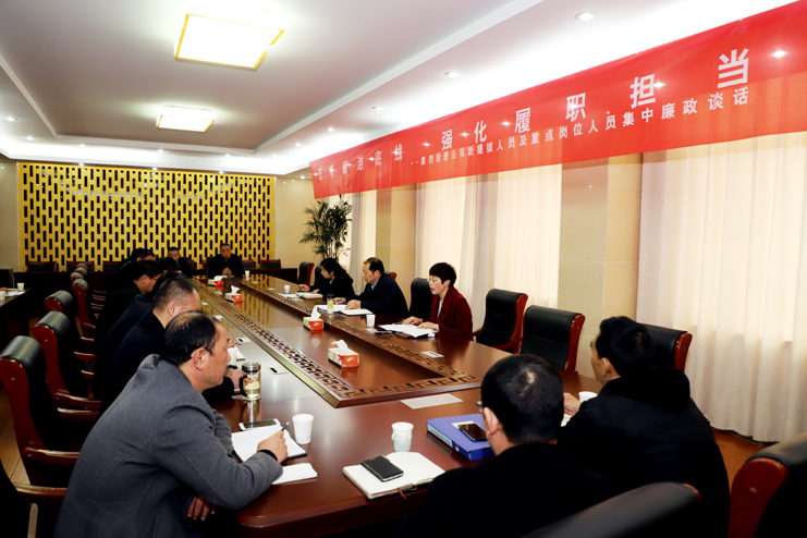 為進(jìn)一步推進(jìn)公司黨風(fēng)廉政建設(shè),提高黨員干部廉潔自律意識(shí),4月11日上午,灌西公司組織開(kāi)展“堅(jiān)守廉潔底線強(qiáng)化履職擔(dān)當(dāng)”2019年新提拔人員及重點(diǎn)崗位人員集體廉政談話,黨委書記、董事長(zhǎng)、總經(jīng)理李國(guó)文,黨委副書記、紀(jì)委書記、工會(huì)主席王宏,新提拔人員以及重點(diǎn)崗位人員參加了廉政談話。