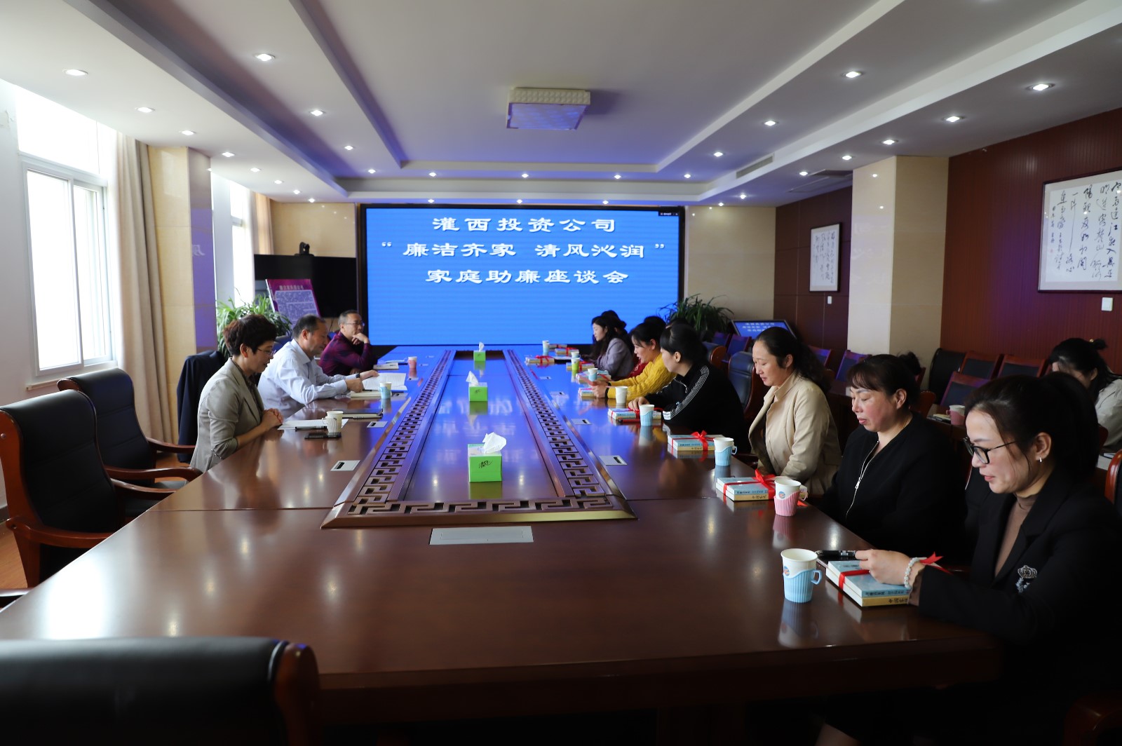 為充分發(fā)揮黨員干部家屬“廉內(nèi)助”的作用,做好“八小時(shí)”外的廉政教育,倡導(dǎo)廣大黨員干部家屬把好家庭廉政關(guān)。10月13日上午,灌西投資公司紀(jì)委召開以“廉潔齊家 清風(fēng)沁潤”為主題的家庭助廉活動(dòng),公司領(lǐng)導(dǎo)干部家屬代表一起拉家常、話正氣、樹家風(fēng),共同守好家庭廉潔防線。