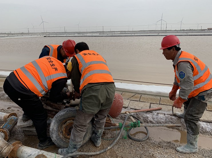 首先,從扒鹽現(xiàn)場的交接班著手,要求交接班前的第一項工作就是填好交接班表,要時刻把安全放在第一位,無論做什么,時刻謹記著安全。其次,每次統(tǒng)機前,參扒人員牢記扒鹽的注意事項,統(tǒng)一分工后各司其職有序開展。最后,從扒鹽的設備著手,對配電箱、大泵、集鹽機進行一次隱患排查,對易損壞處以及危險源再一次進行告知。