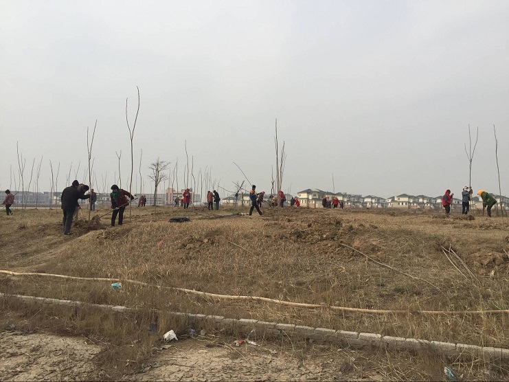 3月29日,南翼綠化公司100余名工人在大棚湖周邊開展植樹造林活動(dòng)。