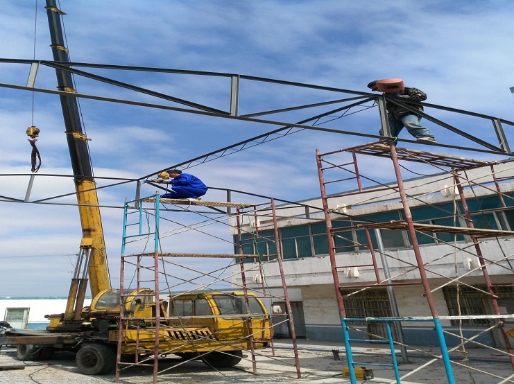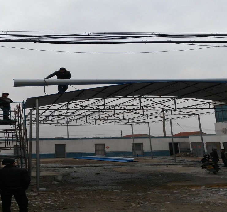 自4月初承接我場中二圩愛心市場大棚制作任務(wù)后,機電服務(wù)公司班子認真進行研究制作方案,購買優(yōu)質(zhì)材料,合理安排技術(shù)人員進行制作,做到多頭并進,加班加點,勞模王緒華、星級員工程洪連身先士卒,其他員工積極參與,到4月19日,全面、安全完成制作安裝任務(wù)。(圖為現(xiàn)場施工中)(胡亞東)