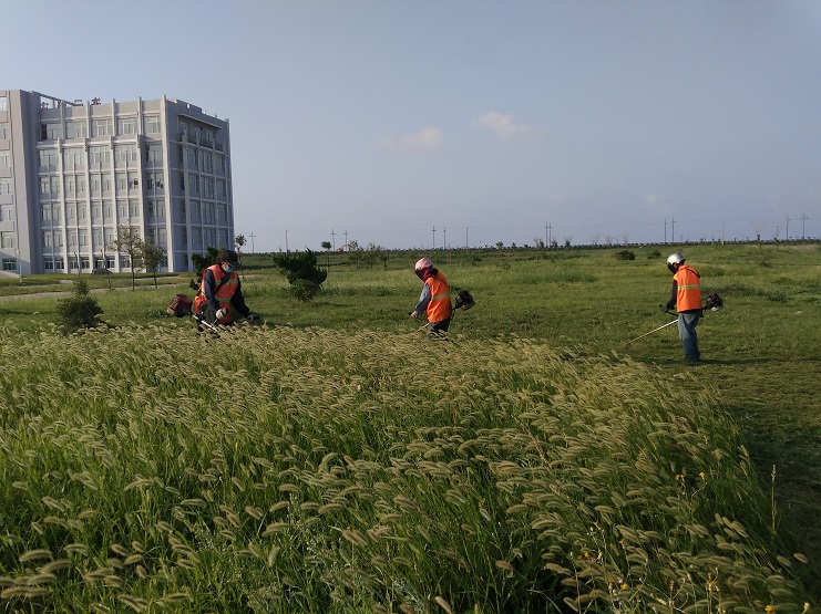 夏季的高溫多雨季節(jié),使道路邊、綠地草坪的雜草瘋長,為保證臨港產(chǎn)業(yè)區(qū)和新城的綠化效果,連日來,南翼公司綠化養(yǎng)護(hù)人員冒著烈日酷暑,對區(qū)域內(nèi)的綠化苗木進(jìn)行修剪,對綠化草坪進(jìn)行修整,清除雜草,著力打造生態(tài)宜居的美麗環(huán)境。