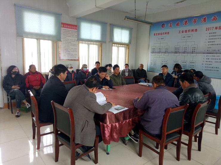 該公司經(jīng)理何正軍首先對(duì)本單位員工提了幾點(diǎn)要求:1、在實(shí)業(yè)公司范圍內(nèi),禁止一切養(yǎng)殖活動(dòng);2、關(guān)于員工的請(qǐng)假制度;3、單位生產(chǎn)物資的管理。之后由書記沈玉波宣傳場(chǎng)投資公司及工會(huì)開(kāi)展的“拼搏二季度、實(shí)現(xiàn)雙過(guò)半”勞動(dòng)競(jìng)賽的要求,學(xué)習(xí)李國(guó)文董事長(zhǎng)的講話:一、認(rèn)清形勢(shì)、正視不足;二、明確目標(biāo),狠抓干勁;三、嚴(yán)明紀(jì)律,團(tuán)結(jié)拼搏,大干不忘安全。沈書記安排了全年各班組制鹵目標(biāo)任務(wù):海鹽基地一班,14000方;二班,24000方;三班,12000方。布置了二季度工作,并帶領(lǐng)大家簡(jiǎn)要學(xué)習(xí)了《中華人民共和國(guó)監(jiān)察法》。最后海鹽基地的班組長(zhǎng)簽訂了承諾書、全年目標(biāo)責(zé)任書。(史祥燕)