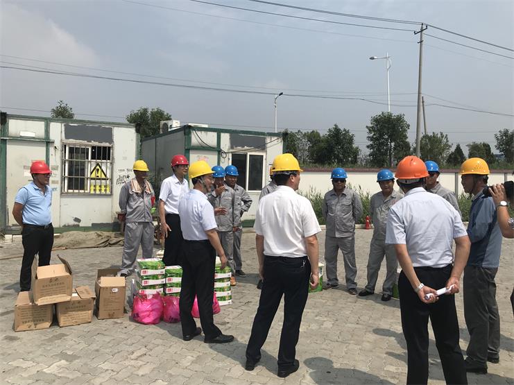 8月1日上午,工投集團(tuán)總經(jīng)理胡建明、副總經(jīng)理張其海等一行人在灌西投資公司董事長(zhǎng)李國(guó)文、黨委副書記王宏、分管領(lǐng)導(dǎo)劉殿龍的陪同下來(lái)到宵洋物流碼頭開(kāi)展“夏日送清涼”慰問(wèn)活動(dòng),為奮戰(zhàn)在一線的員工們送來(lái)牛奶、綠豆、白糖等防暑降溫物品。期間,胡建明總經(jīng)理等人同宵洋碼頭的一線員工們親切交談,詳細(xì)詢問(wèn)他們的生產(chǎn)生活情況,同時(shí)強(qiáng)調(diào)要盡量避開(kāi)高溫時(shí)段進(jìn)行作業(yè)。隨后集團(tuán)總經(jīng)理胡建明等一行人也聽(tīng)取了工作人員講解現(xiàn)場(chǎng)施工安全和后勤保障的開(kāi)展情況,并再次要求一定要做好夏季安全生產(chǎn)和防暑降溫工作。落實(shí)各項(xiàng)防暑降溫措施,強(qiáng)化安全責(zé)任制,為員工提供良好的安全生產(chǎn)環(huán)境。(宵洋物流 張寶同)
