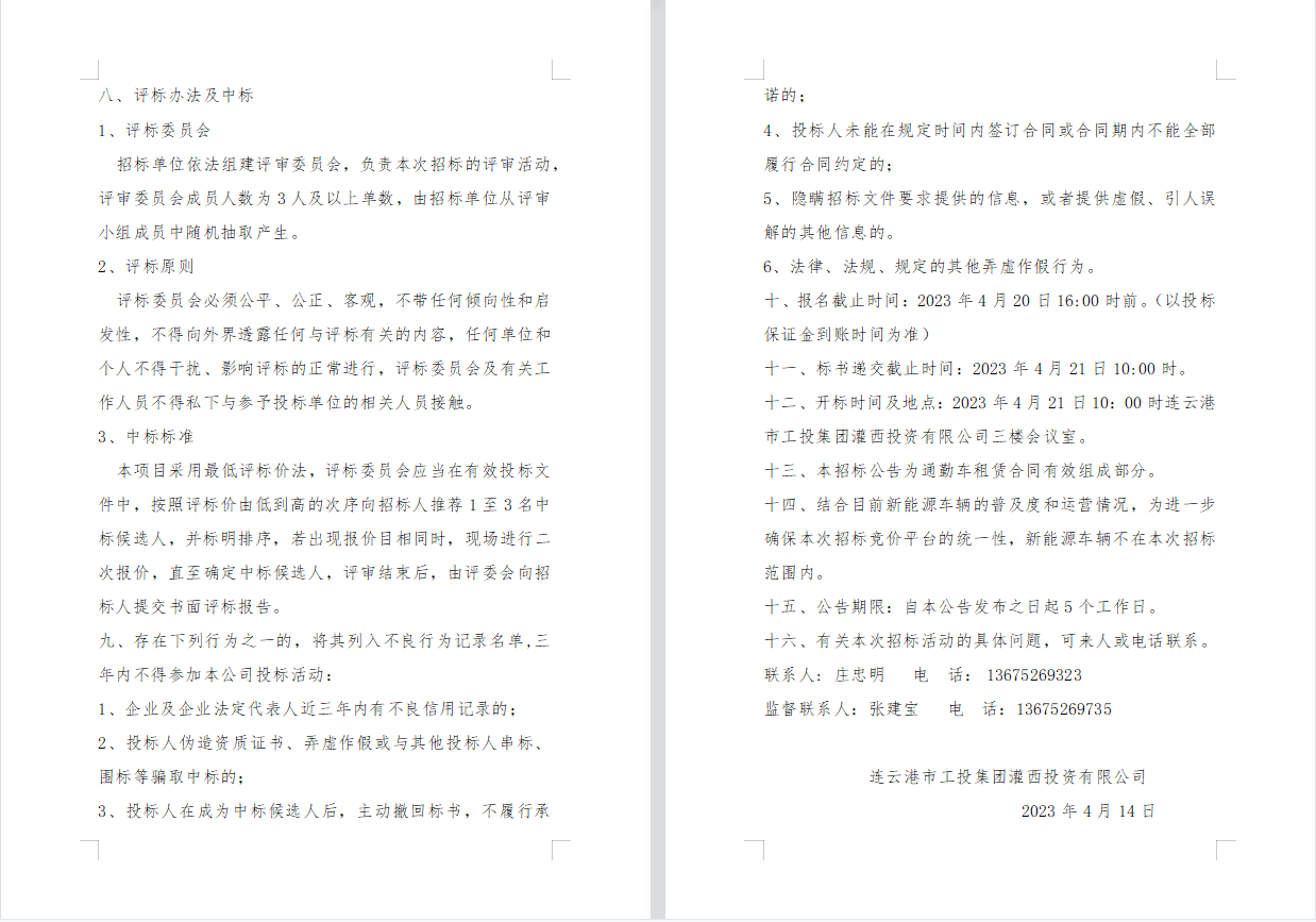 連云港市工投集團灌西投資有限公司 員工上下班通勤車輛租賃項目公告