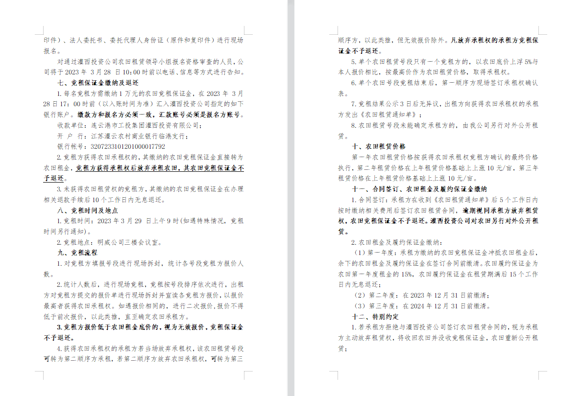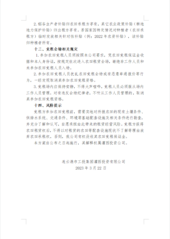 2023年灌西投資公司農(nóng)田公開(kāi)競(jìng)租三次公告