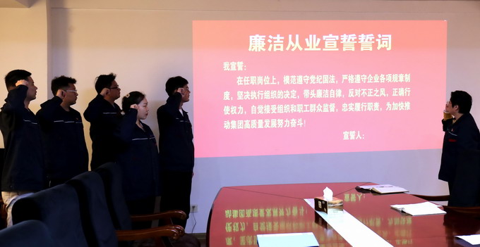 會議傳達(dá)了集團紀(jì)委《關(guān)于扎實開展年輕干部“廉政教育月”活動的通知》文件精神,簽訂了《廉潔承諾書》、發(fā)放了《家庭助廉倡議書》和進行廉潔從業(yè)宣誓。