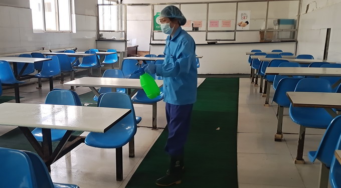 落實(shí)防疫措施圖為餐廳消毒