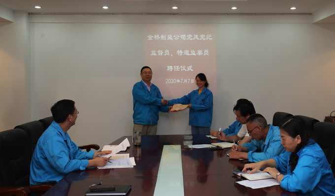 為進一步加強黨風廉政建設(shè),拓寬監(jiān)督渠道,構(gòu)建黨內(nèi)監(jiān)督、行政監(jiān)察與群眾監(jiān)督相結(jié)合的監(jiān)督制約機制,7月7日,我公司在二樓會議室舉行黨風黨紀監(jiān)督員、特邀監(jiān)察員聘任儀式,黨委書記、董事長、總經(jīng)理朱桂玉為盧明江、徐元等6名黨風黨紀監(jiān)督員和徐永亮、陳東等6名特邀監(jiān)察員頒發(fā)了聘書。(金宣 金紀)