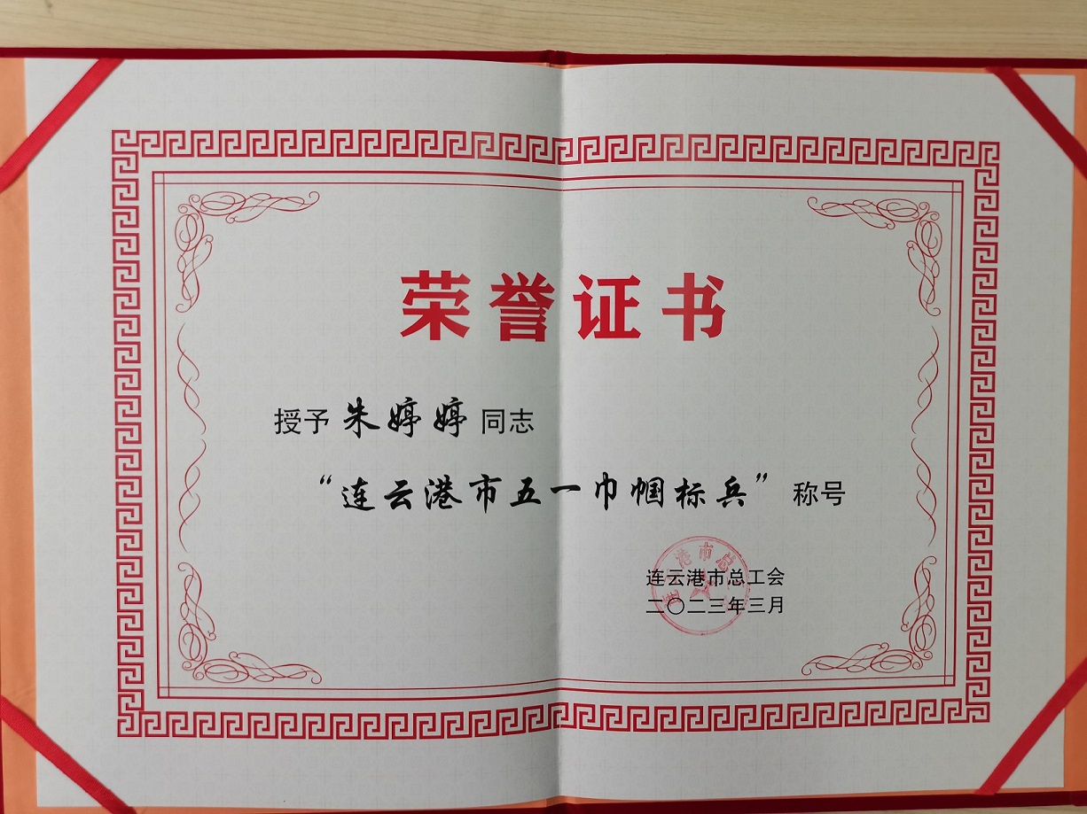五一勞動節(jié)來臨之際,連云港市總工會下發(fā)獎勵通知,授予格斯達擔(dān)保公司風(fēng)險部副經(jīng)理朱婷婷“五一巾幗標(biāo)兵”稱號!