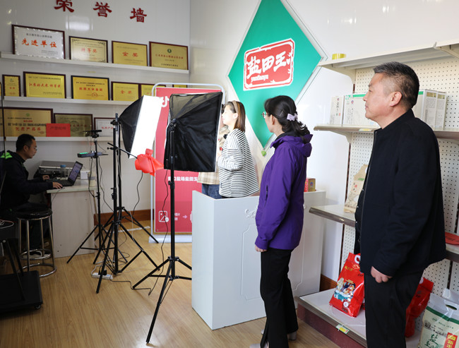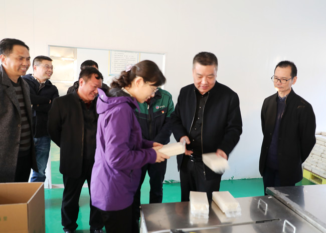 調(diào)研組先后參觀“鹽田玉”抖音帶貨直播間、“鹽田玉”生產(chǎn)加工車間、大新農(nóng)場水稻收割現(xiàn)場。