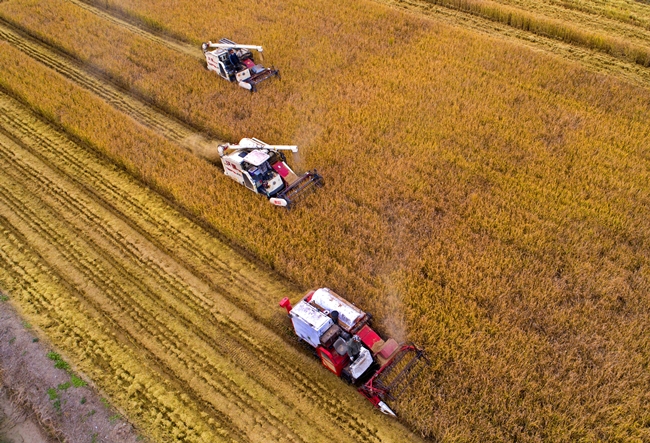 ? ?10月28日,青口投資公司的萬畝鹽堿地標(biāo)準(zhǔn)化農(nóng)田里,有機(jī)水稻示范點率先開鐮收割,現(xiàn)代化收割機(jī)正開足馬力進(jìn)行水稻收割作業(yè),到處一派繁忙喜悅的秋收景象。