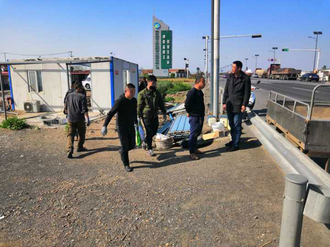 公司領(lǐng)導(dǎo)態(tài)度明確,一抓到底全面整治交通環(huán)境。摸清形勢,多次召開整治工作專項(xiàng)會議,安排部署整治行動 , 公司領(lǐng)導(dǎo)放棄節(jié)假日,現(xiàn)場辦公。三洋、黃沙、大新作為主要牽頭單位,主動扛起責(zé)任,挑起擔(dān)子,從泰祥公司抽調(diào)人力,大家齊心協(xié)力。按照時間節(jié)點(diǎn),倒排工期,掛圖作戰(zhàn),針對現(xiàn)場工作內(nèi)容,制定 “三步工作法”。一是深入塘頭養(yǎng)殖戶面對面交流,講明利害關(guān)系,做通群眾思想工作,確保整治行動順利進(jìn)行;二 是 制定好拆除先后順序,調(diào)配需要的挖掘機(jī)、運(yùn)輸車輛等硬件設(shè)施,確保拆遷過程快速有力;三 是 對于已拆除的看護(hù)房,及時清理房屋碎石塊,筑牢地基,安排重建。