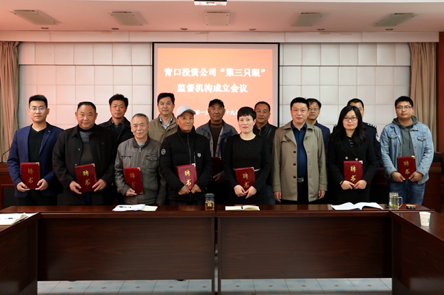 4 月 19 日上午,青口投資公司在四樓會(huì)議室召開“第三只眼”監(jiān)督機(jī)構(gòu)成立會(huì)議。公司黨委書記、董事長(zhǎng)胡傳法,黨委委員、分管領(lǐng)導(dǎo)宋晟曄及受聘的 12 名監(jiān)督員參加了會(huì)議。