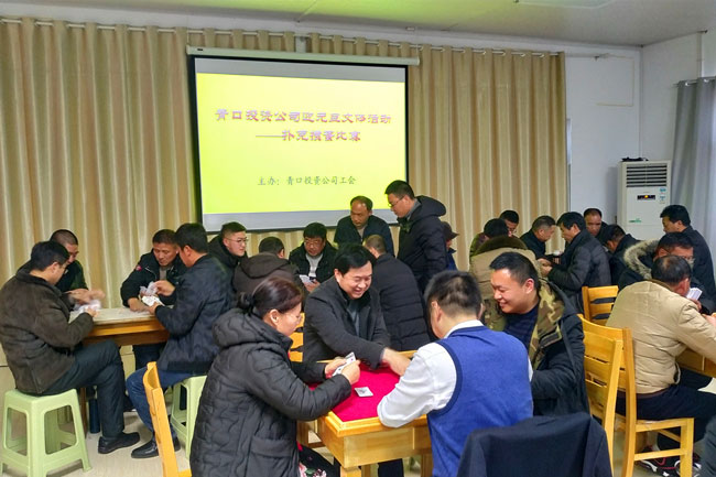 27日,在職工活動(dòng)室,約50名員工參加了撲克牌摜蛋比賽。賽前選手通過(guò)抽簽決定對(duì)手,采取淘汰賽方法進(jìn)行。比賽中參賽選手聚精會(huì)神、密切配合、精確計(jì)算、謹(jǐn)慎出牌。對(duì)陣雙方比牌技、比智慧、賽成績(jī)、賽友誼。每一局比賽結(jié)束,不時(shí)傳出參賽選手懊悔和興奮的唏噓聲,也有旁觀者贊嘆和惋惜的評(píng)價(jià),比賽就在這樣時(shí)而緊張、時(shí)而熱烈的氣氛中進(jìn)行。經(jīng)過(guò)激烈、公平、公正的角逐,黃沙分場(chǎng)代表隊(duì)的劉英軍、李召田獲得冠軍,米業(yè)營(yíng)銷的的嚴(yán)鑫、葛蘇獲得亞軍。