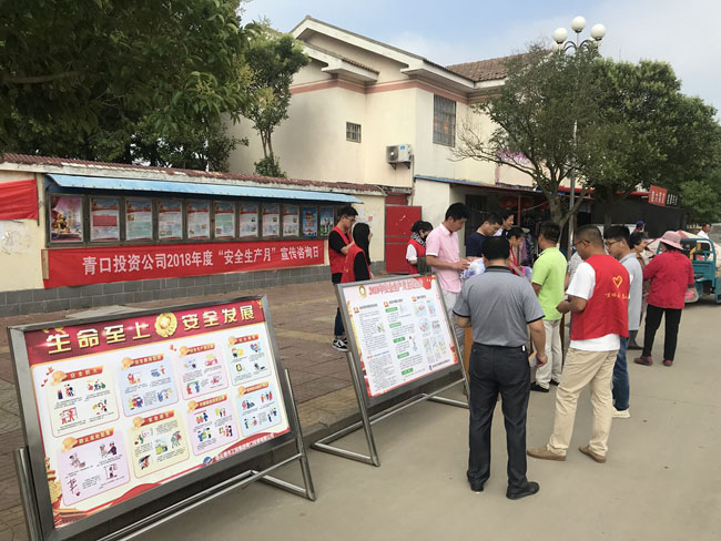 6月14日上午,青口投資公司舉行以“生命至上,安全發(fā)展”為主題的“安全生產(chǎn)月”宣傳咨詢?nèi)栈顒?dòng)。張貼安全月主題掛圖12幅,展板5塊,發(fā)放《安全月主題》、《急救自救互救知識(shí)》、《用電安全十不準(zhǔn)》、《電動(dòng)車安全知識(shí)普及》等宣傳單200余張?;顒?dòng)現(xiàn)場(chǎng),公司將“鹽田玉”大米作為小禮品向職工群眾發(fā)放。通過(guò)宣傳咨詢?nèi)栈顒?dòng)以提高企業(yè)安全生產(chǎn)意識(shí)和廣大職工群眾安全素質(zhì),有利于宣傳安全文化、安全生產(chǎn)管理制度、事故預(yù)防與處理及安全技能知識(shí),更有利于宣傳企業(yè)在開展安全建設(shè)與管理過(guò)程中形成的優(yōu)秀成果,為企業(yè)營(yíng)造潤(rùn)物無(wú)聲的安全文化意境,讓職工群眾深受教育、感悟常新。 (安技部)
