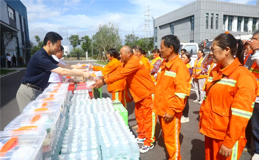 高溫下的熱情,用關(guān)愛撫慰人心。公司工會(huì)持續(xù)開展“夏送清涼保安康”活動(dòng),先后到先鋒東灘、躍湖路、東方大道、黃海大道等作業(yè)現(xiàn)場,慰問不畏高溫,不懼辛苦奮戰(zhàn)在高溫現(xiàn)場的干部職工,為在高溫天氣下堅(jiān)守崗位的職工們撐起一片綠蔭。把清涼的飲用水、綠茶和綠豆湯,以及防暑降溫藥品送到職工手中,親切地囑咐職工們做好自我防護(hù),提醒大家在戶外作業(yè)的同時(shí)要注意防暑降溫,注重作業(yè)安全和身體健康。