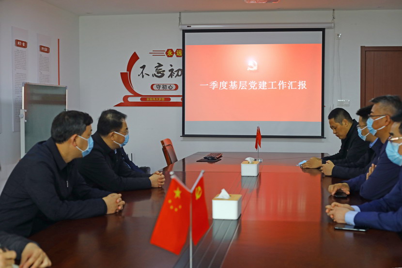 隨后,戴書記一行在會議室聽取投資公司一季度黨建工作匯報,對投資公司工作給予肯定,投資公司領導班子面對突如其來的疫情時,做到了應變有力、保障有力、組織有力。在聽取近期生產經營、黨的建設等工作匯報后,戴書記提出四點指導意見:一是不折不扣落實上級指示精神。二是毫不動搖抓好疫情防控和復工復產。三是一著不讓推進黨建與工會工作。四是深入細致安全穩(wěn)定環(huán)保工作。