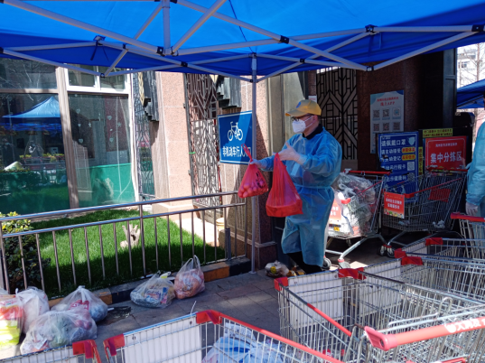 “大爺,您好,拿什么菜?”早上8點,海州防疫臨時黨支部的江海凌同志開始一天的志愿服務。不過,他今天“改行”了,不再是信息采集員,而是化身鄰居菜籃子的“守護者”。